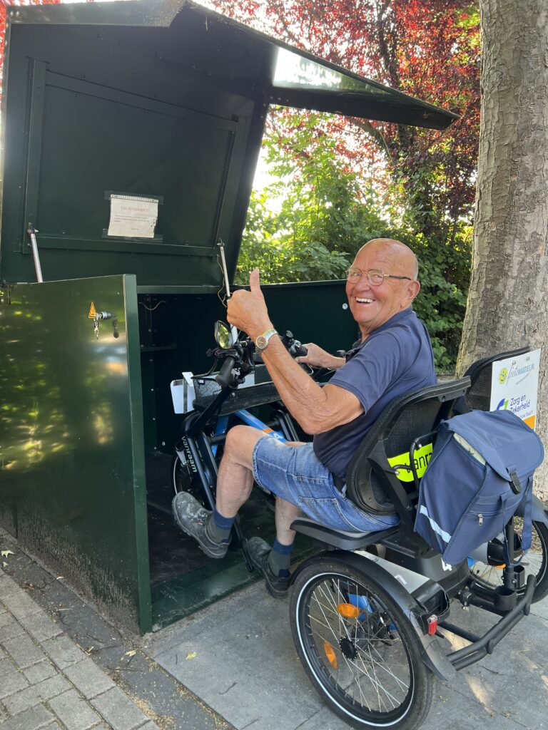 Zodra de scootmobiel of fiets in de Scootercube geplaatst zijn, dan kan je hem direct weer opladen via het oplaadpunt zodat u altijd met een volle accu vertrekt.