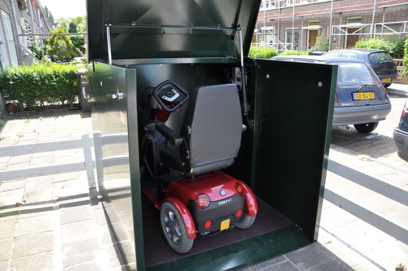 Door de nieuwe wetgeving mogen mobiliteitsvoertuigen, niet meer gestald worden op de gang en vluchtroutes. Wij hebben hier een gebruiksvriendelijke oplosssing voor, die het voertuig direct beschermt tegen diefstal en de weersinvloeden.